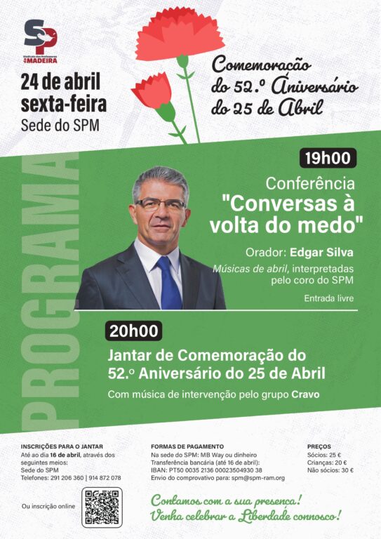 Inscrições abertas para o Jantar de Comemoração do 52.º Aniversário do 25 de Abril.