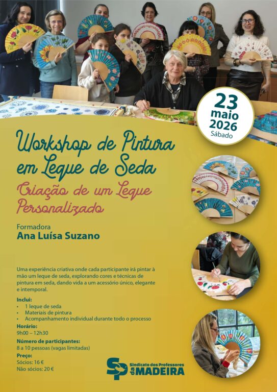 O SPM tem o prazer de te convidar a participar no Workshop de Pintura em Leque de Seda, uma experiência criativa e inspiradora onde cada participante irá pintar à mão o seu próprio leque de seda, explorando cores e técnicas específicas de pintura em seda, dando vida a um acessório único, elegante e intemporal, com estrutura em madeira envernizada.