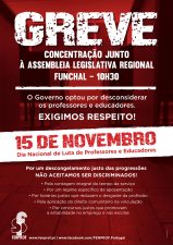O Secretariado Nacional da FENPROF enviou, esta tarde, o Pré-Aviso de Greve para o dia 15 de novembro pelo descongelamento justo das progressões, recuperação dos anos de congelamento e contagem integral do tempo de serviço prestado pelos docentes. 15 de novembro de 2017 será um Dia Nacional de Luta dos Professores, coincidindo com a data em que, na Assembleia …