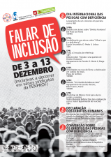 Prosseguindo o trabalho que tem vindo a desenvolver, a FENPROF, em parceria com a CNOD, no âmbito de um projeto financiado pelo INR, realiza várias iniciativas ao longo do mês de Dezembro. Em 3 de dezembro comemora-se o Dia Internacional da Pessoa com Deficiência. Neste dia, as organizações envolvidas divulgarão um concurso que decorrerá ao …