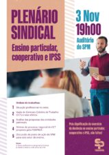 Cara(o) colega, em tempos de incerteza e de impasse negocial é importante mantermo-nos informados e mobilizados, só juntos podemos tomar decisões relevantes, na defesa dos nossos direitos. Não falte ao Plenário Sindical agendado para a próxima quarta-feira às 19h00, na Sede do SPM (aberto a todos os docentes do setor, associados ou não).