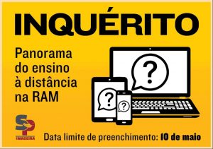 Apelamos ao preenchimento do inquérito “Panorama do ensino à distância na RAM”, que vai muito além do anterior inquérito, que só analisou as duas primeiras semanas de ensino à distância e as reuniões de avaliação do 2.º período. Inquérito: https://docs.google.com/forms/d/e/1FAIpQLScrAtq2QHD6S1SPHlarAv9JCIMOXhKhhAw1nT2A9GJa07JYWA/viewform?usp=send_form
